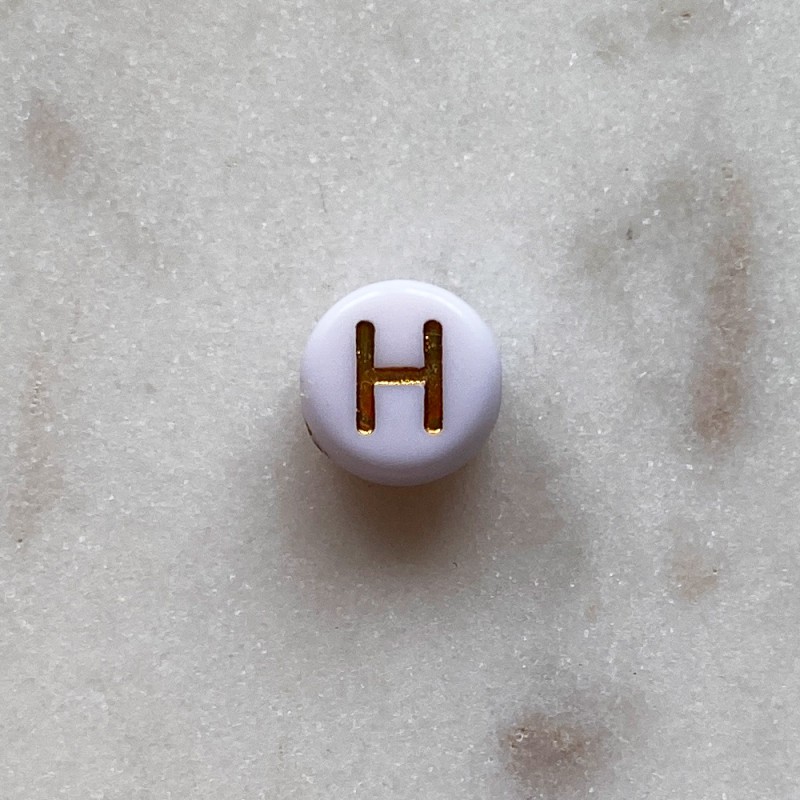 Perle de couleur dorée lettre H. Diamètre 8mm. Perceuse 1mm