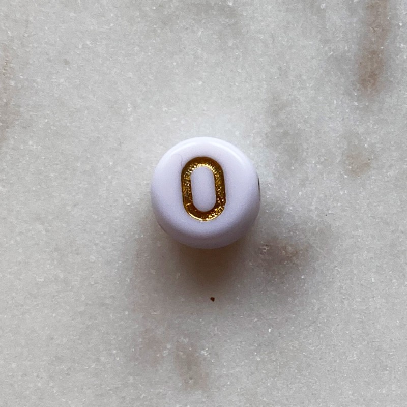 Perle de couleur dorée lettre O. Diamètre 8mm. Perceuse 1mm