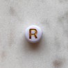 Perle de couleur dorée lettre R. Diamètre 8mm. Perceuse 1mm
