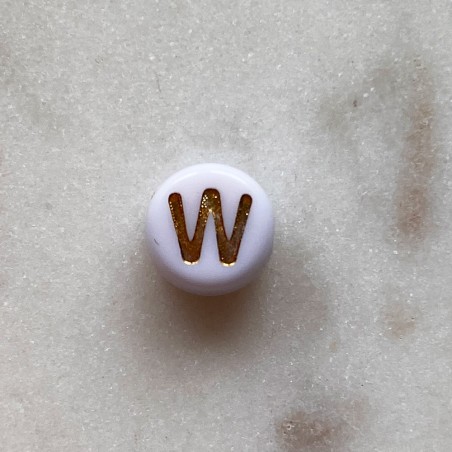 Perle de couleur dorée lettre W. Diamètre 8mm. Perceuse 1mm