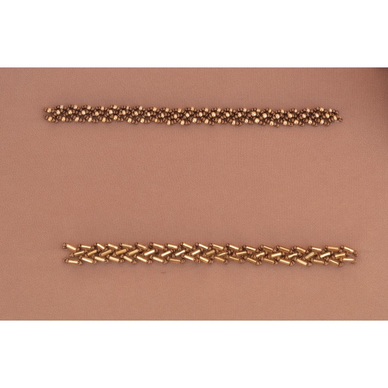 * 10 grammes de rocaille Miyuki (moustache) de taille 8/0 couleur or clair. Référence 219-1052.