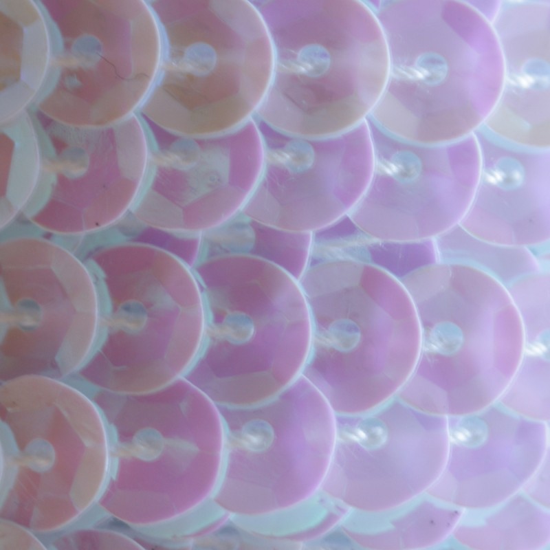 Paillette concave de couleur Crystal AB de 6mm. Il est vendu au mètre.