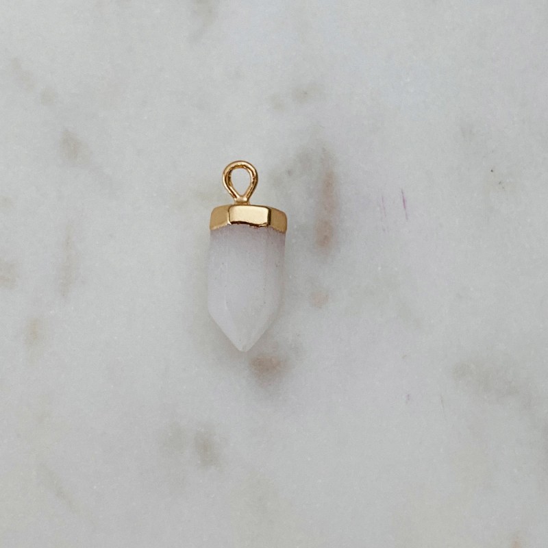 Mini pendentif quartz crayon blanc 15 mm argent 925 doré