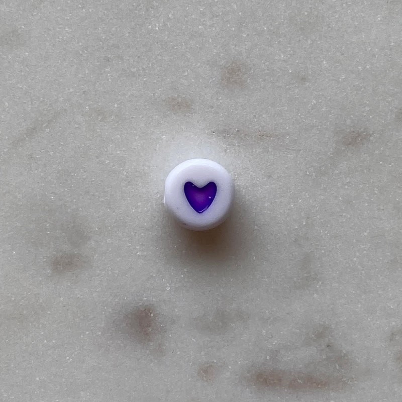 Abeille à cœur violet. Diamètre 8mm. Perceuse 1mm