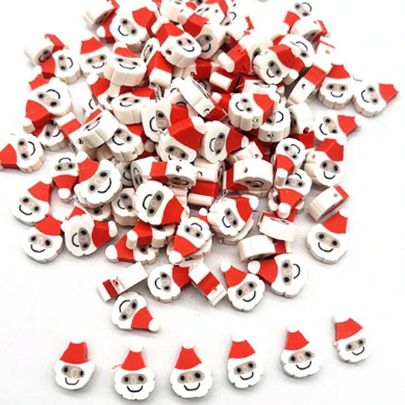 Perles Père Noël en argile polymère de couleur multicolore de 10mm.