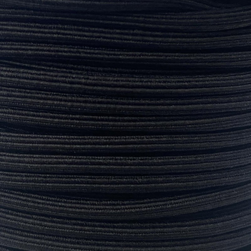 Cordon élastique rayée 2,5 mm d'épaisseur en Noir. Ce cordon est spécial pour créer des bracelets, des colliers et des porte-clés.