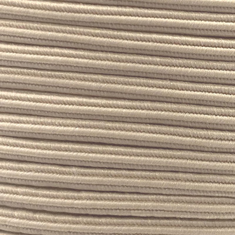 Cordon élastique rayée 2,5 mm d'épaisseur en Beige. Ce cordon est spécial pour créer des bracelets, des colliers et des porte-clés.
