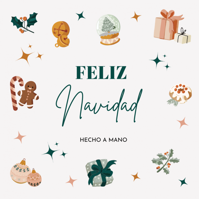 Carte carrée en carton avec un motif de Noël et une phrase faite à la main, spéciale pour emballer vos détails + pochette transparente. Vous pouvez faire deux découpes en haut et y accrocher le pendentif. Egalement deux trous au milieu et mettre les boucles d'oreilles et enfin deux découpes de chaque côté de la carte pour les bracelets.