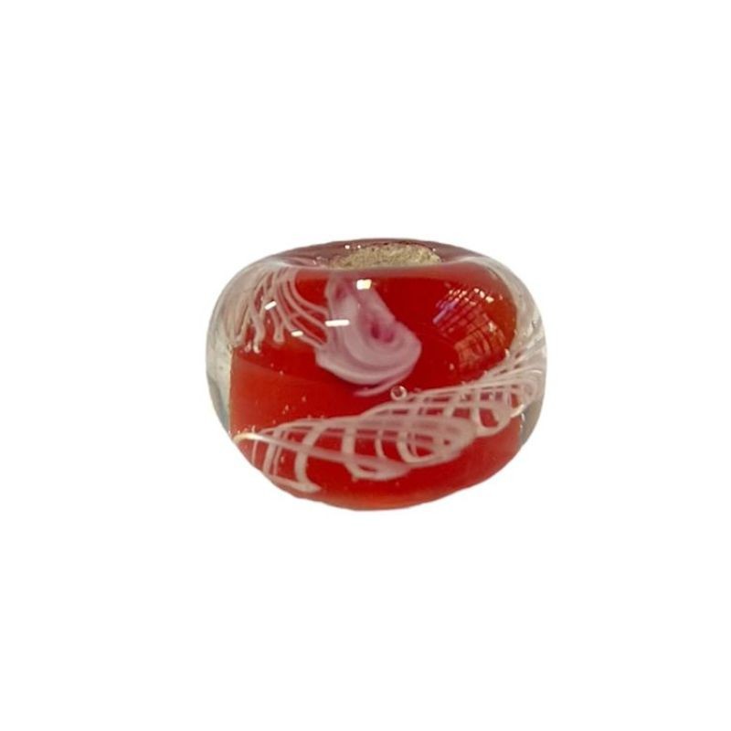 Le verre de Murano compte 14 x 8 mm pour un cordon de 5 mm. Rouge avec spirale blanche