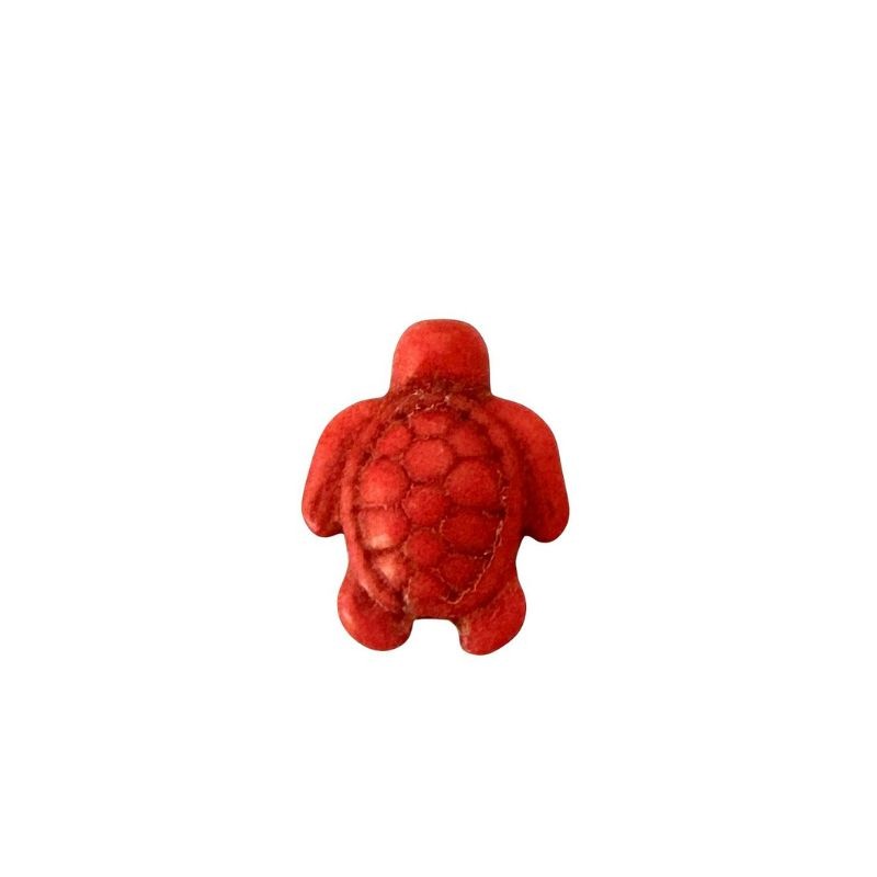 Intercalaire turquoise avec foret corail en forme de tortue. Sa mesure est de 17 x 14 mm