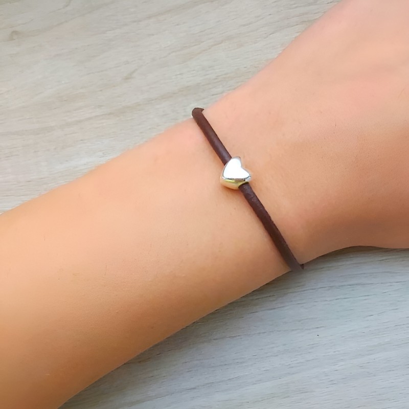 Perle coeur de 8 mm avec trou de 2,5 mm en zamak plaqué d'argent. Idéal pour le cuir rond de 2,5 mm