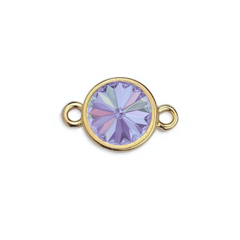 Intercalaire en zamak plaqué or avec rivoli couleur Vitrail Light. Nous vous conseillons de coller les deux pièces ensemble à l'aide de notre colle spéciale bijoux, référence 7405.