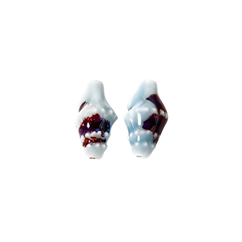 Perle en céramique en forme de coquillage de 20 mm de long avec trou traversant de 2 mm de couleur bleu.