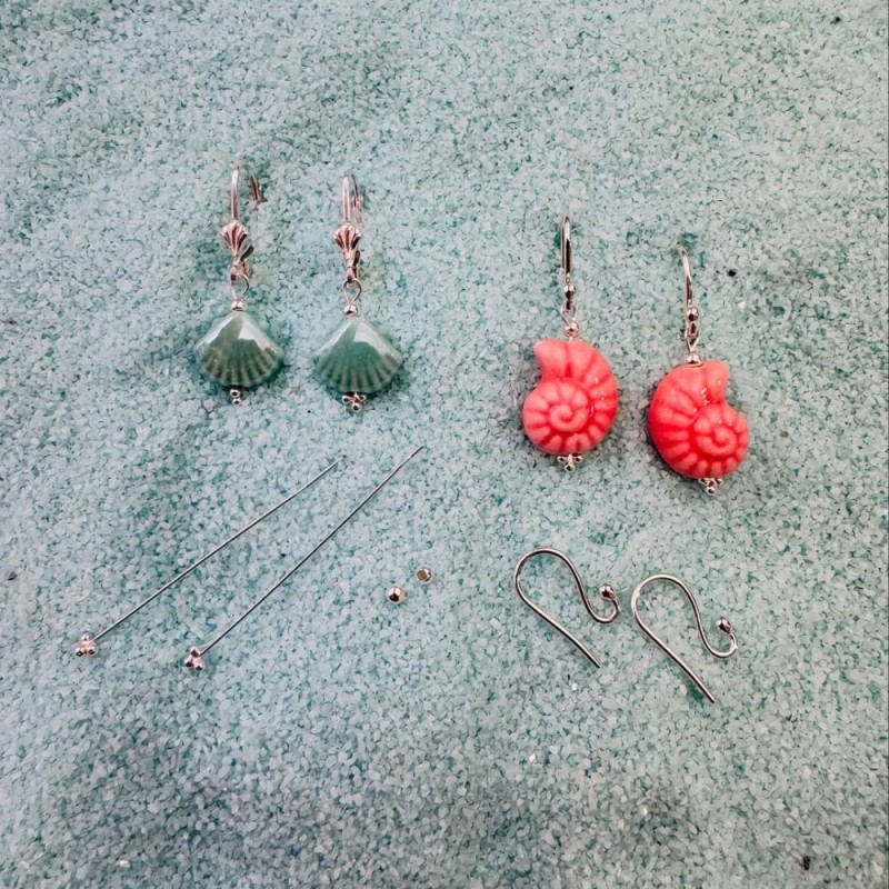 Mini perle en céramique en forme de coquillage, 10 mm de long, 12 mm de large et trou traversant de 1,5 mm, en bleu turquoise.