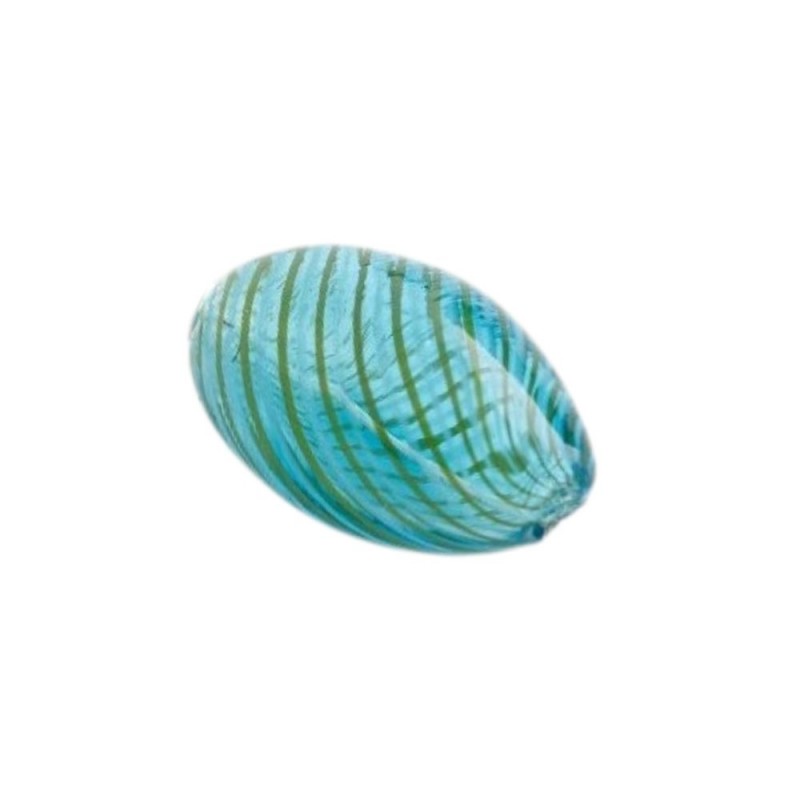 Verre soufflé en forme de goutte, 13 x 8 mm. Turquoise rayé.