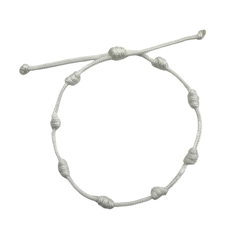 Bracelet en macramé à nœuds ajustable. Blanc.