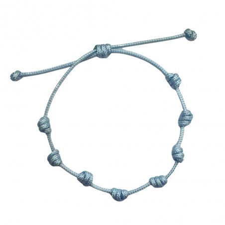 Bracelet à nœuds réalisé avec un fil de macramé de 1,5 mm de couleur Bleu bébé. Il est ajustable grâce à un nœud coulissant.