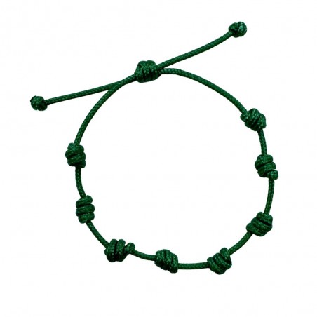 Bracelet à nœuds réalisé avec un fil de macramé de 1,5 mm de couleur Vert bouteille. Il est ajustable grâce à un nœud coulissant.