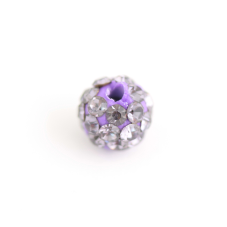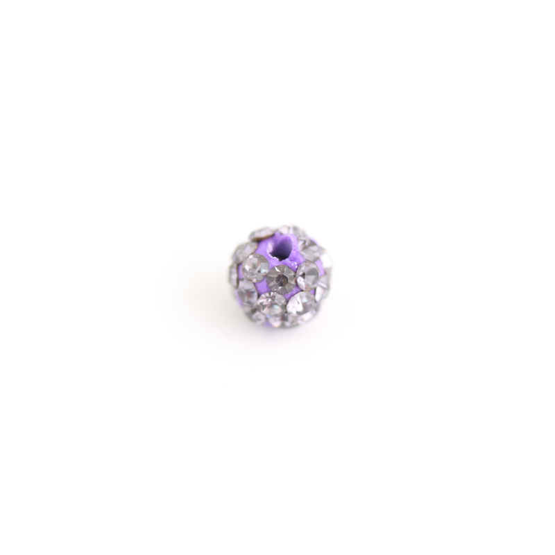 Boule de 6 mm. avec strass violet. Perceuse intérieure de 1,5 mm. Le sac contient 1 unité.