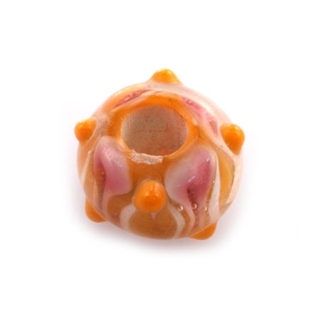 Le verre de Murano compte 14 x 8 mm pour un cordon de 5 mm. Orange et rose.