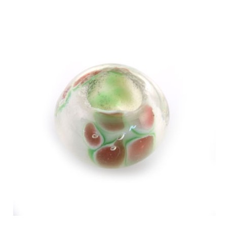 Le verre de Murano a 13 x 8 mm pour le cordon 6 mm. Blanc avec impression.