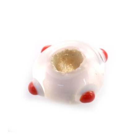Le verre de Murano a 13 x 8 mm pour un cordon de 5 mm. Couleur rose pâle avec des points de boule rouges.