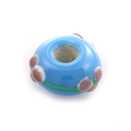 Le verre de Murano a 15 x 8 mm pour le cordon de 5 mm. Bleu avec des motifs.