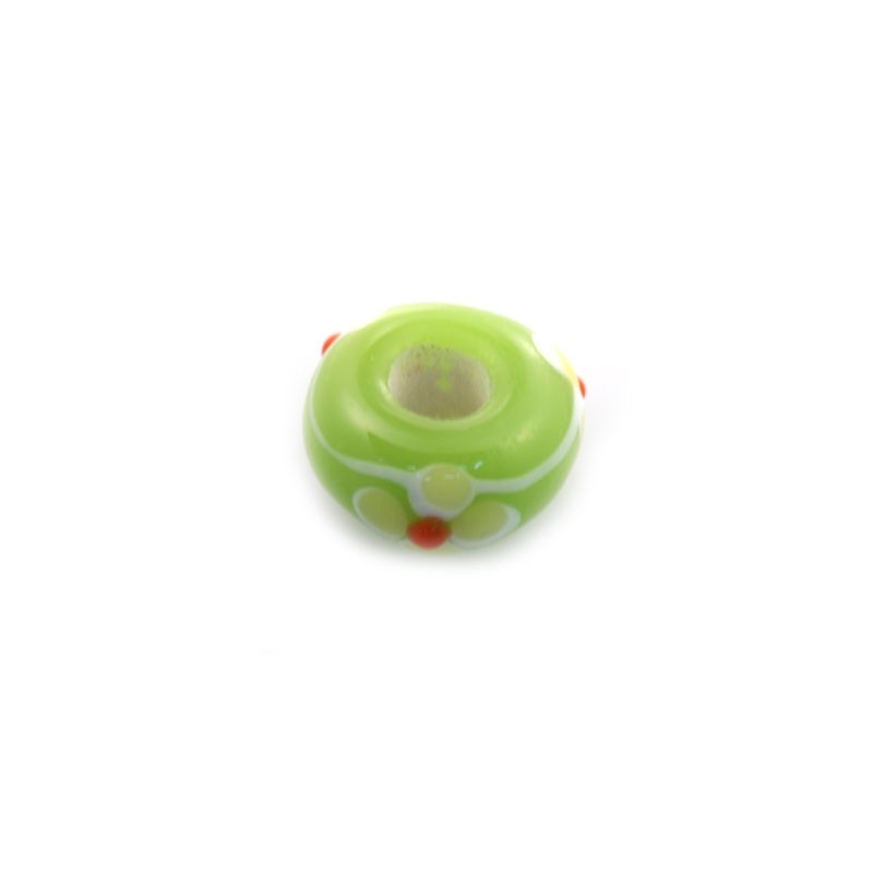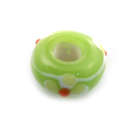 Le verre de Murano a 15 x 8 mm pour le cordon de 5 mm. Pistache avec des fleurs.
