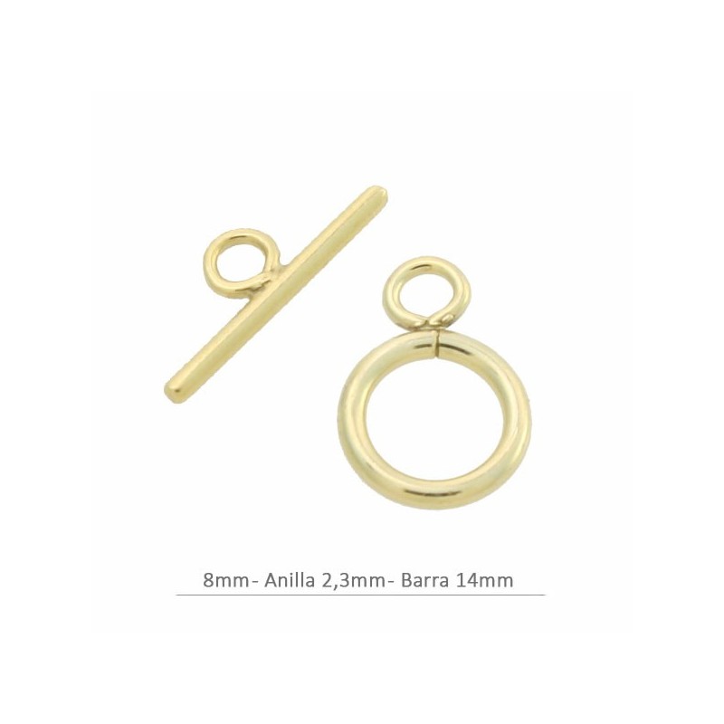 Embout marin en argent 925 doré, diamètre 8 mm avec barre 14 mm.
