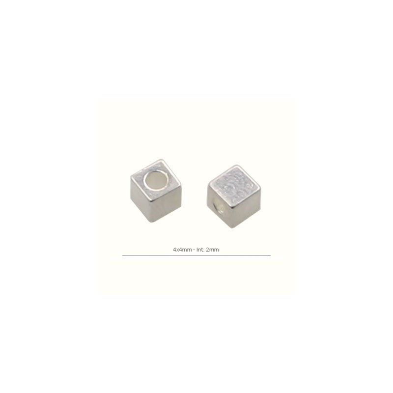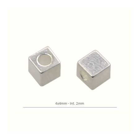 - Cube en zamac avec argenté. - La taille est de 4x4 millimètres et la perceuse intérieure est de 2 millimètres. - Le prix est par sac et le sac contient 50 unités