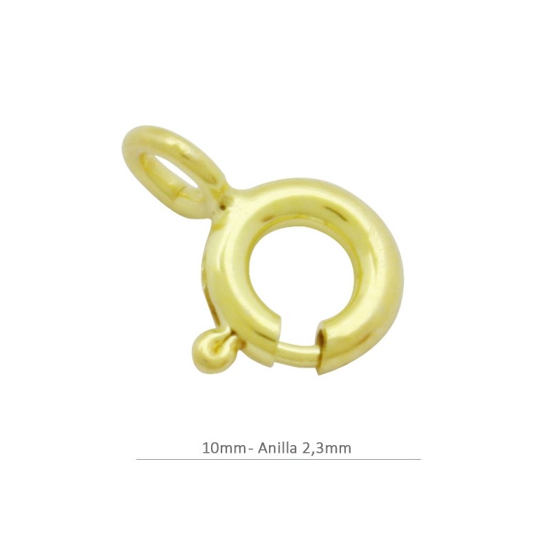 Fermoir à ressort anneau de 10 mm 2,3 mm argent 925 doré