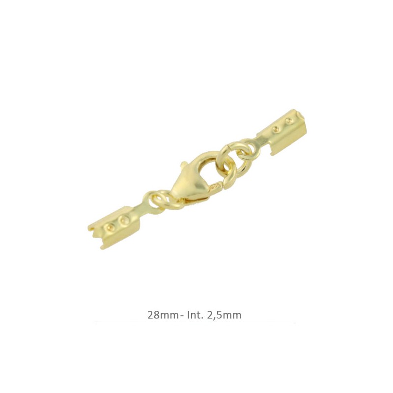 Embout pince lacet avec mousqueton pour cordon 1,5 mm. Le terminal mesure 8mm de long et 2 mm à l'intérieur en argent 925 doré. Fabriqué en Espagne.