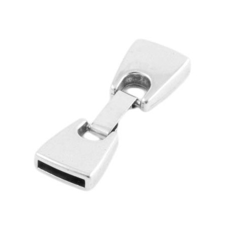 Fermoir avec la langue dans zamac avec argenté. Le sac contient 1 unité. La taille est de 32x20 mm. et est pour le ruban plat de 10 mm.