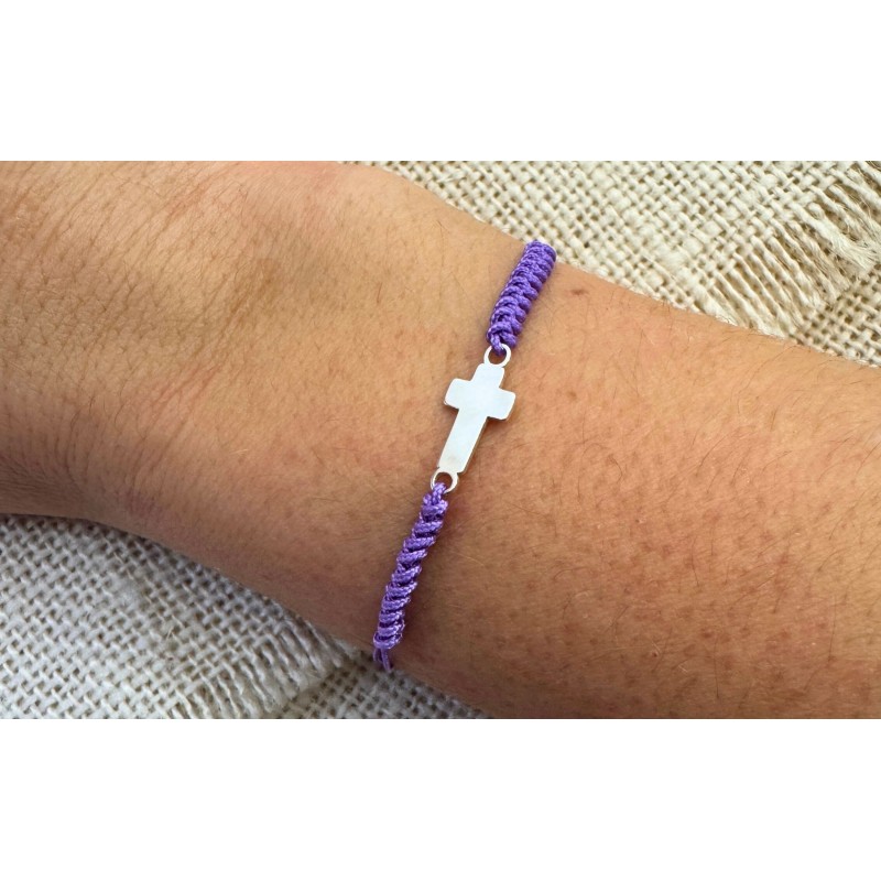 Surprenez vos invités en créant à la main les détails de votre fête de baptême ou de communion, en leur offrant ce joli bracelet avec entretoise en forme de croix, qu’ils pourront porter tous les jours pour se souvenir de cette belle journée. La couleur du cordon sur la photo est lilas.