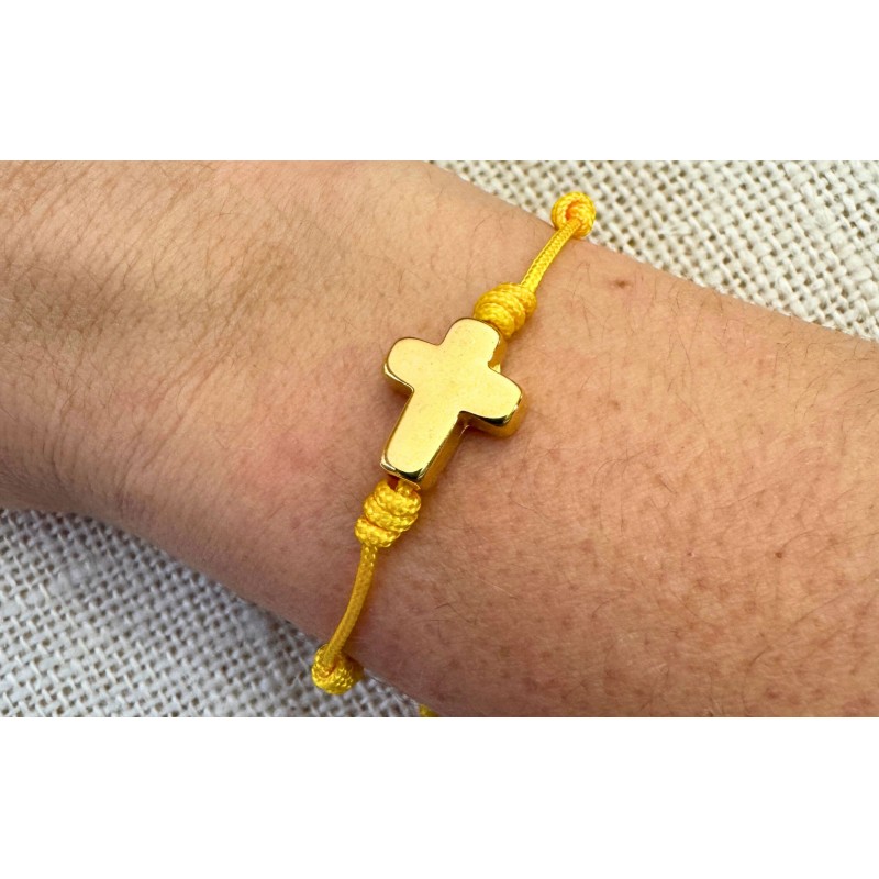 Surprenez vos invités en créant à la main les détails de votre fête de baptême ou de communion, en leur offrant ce joli bracelet avec pendentif croix qu’ils pourront porter tous les jours pour se souvenir de cette belle journée. La couleur du cordon sur la photo est jaune.