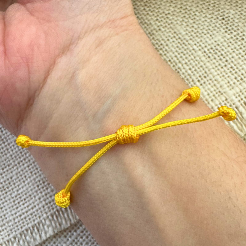 Pour la fermeture, croisez les cordons et réalisez un nœud macramé avec les 25 cm restants.