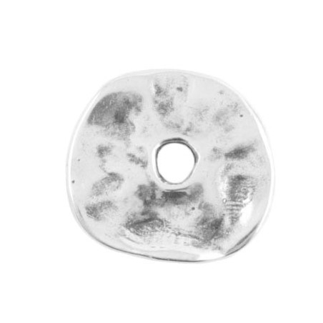 Disque mégalithique en zamac avec argenté. Le sac contient 1 unité. Le diamètre est de 28x31 mm. et la perceuse est de 5 mm.