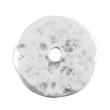 Disque mégalithique en zamac avec argenté. Le sac contient 1 unité. Le diamètre est de 42 mm. et la perceuse est de 6 mm.