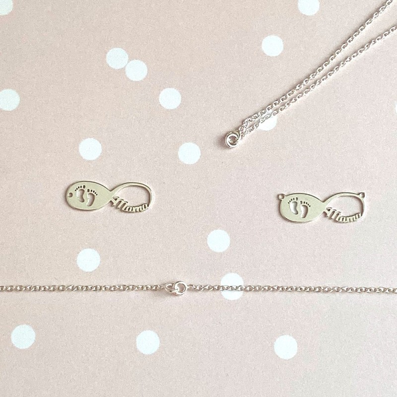 Intercalaire Mama infini avec des empreintes de pas 20mm. Argent 925. Le prix est par sac et le sac contient une unité.