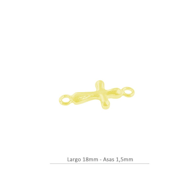 Croix recadrée avec des bagues, en argent 925 baigné d’or. Le sac contient 1 unité. La taille est de 16 mm. et la bague est de 1,5 mm.