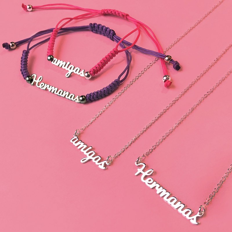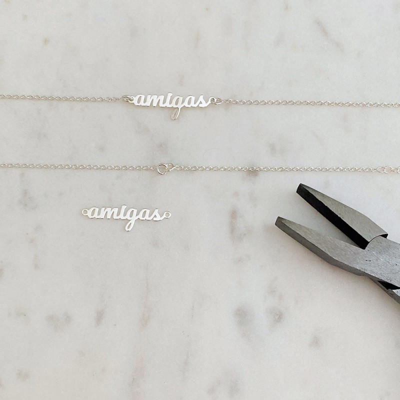 Il interjeses « Amigas » en argent 925. La taille est de 25 mm et les anneaux sont de 0,9 mm - Le prix est par sac et le sac contient une unité.