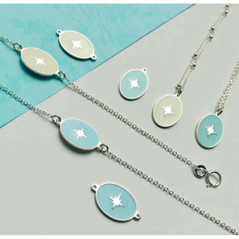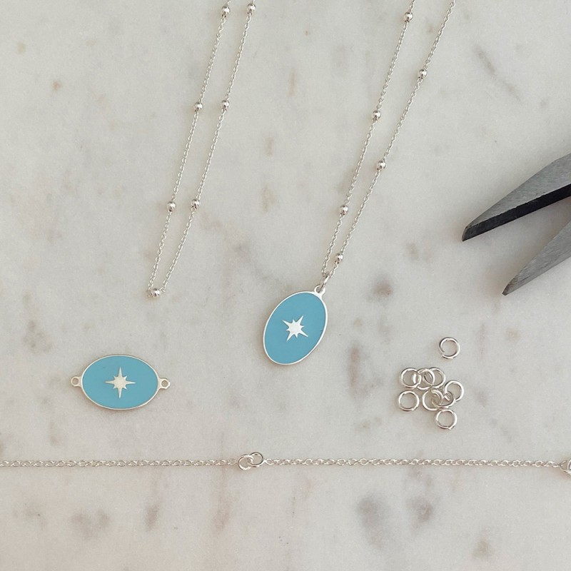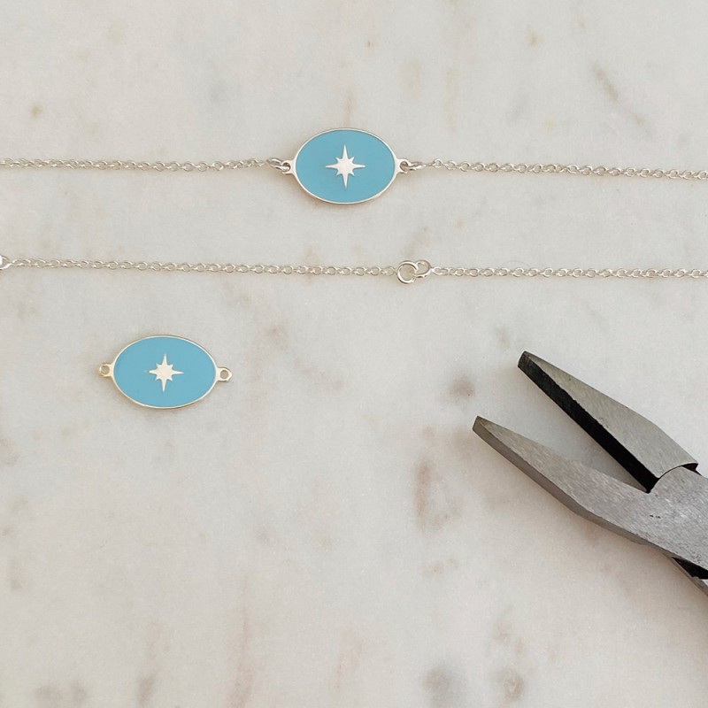 Intercalaire ovale bleu avec étoile polaire 17 de long - 10 de large et anneau 1,2 mm