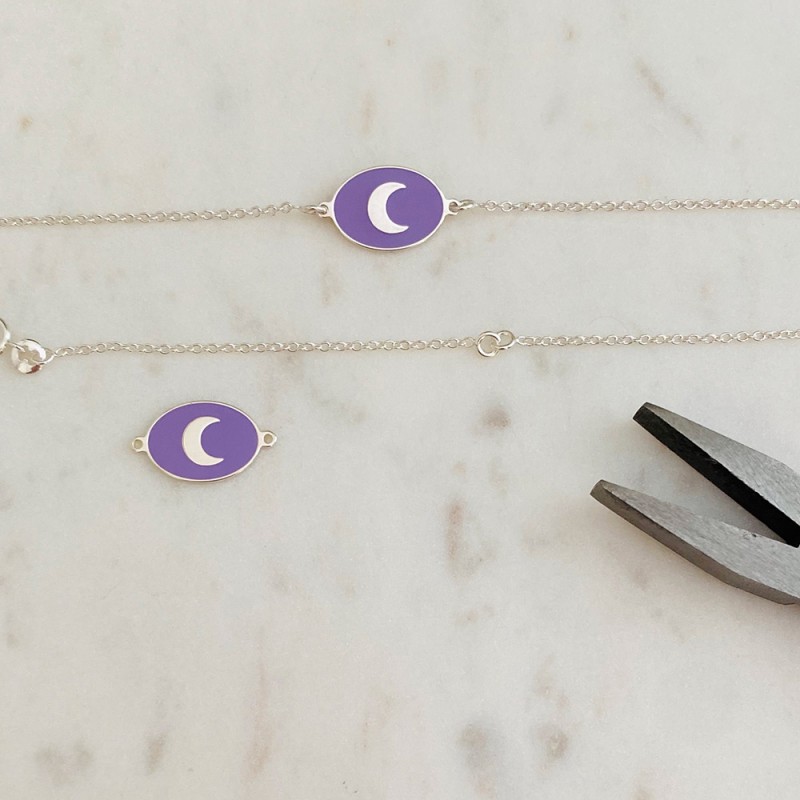 Intercalaire ovale violet avec lune 17mm de long - 10mm de large et anneau 1.2mm