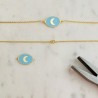 -Intercalaire ovale bleu avec lune en argent argent 925 doré 17mm de long - 10mm de large et anneau 1,2 mm - Le prix est par unité.