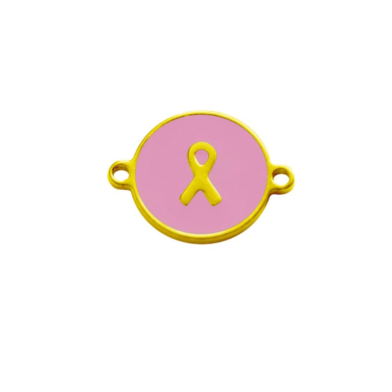 Il brochette un ruban anticancéreux émaillé rose dans argent 925, baigné d’or 18 carats. Fabriqué en Espagne.