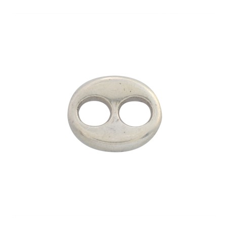 - Calabrote en zamac avec argenté. - La taille est de 17x14x7 millimètres et la perceuse est de 5 millimètres. - Le prix est par unité.