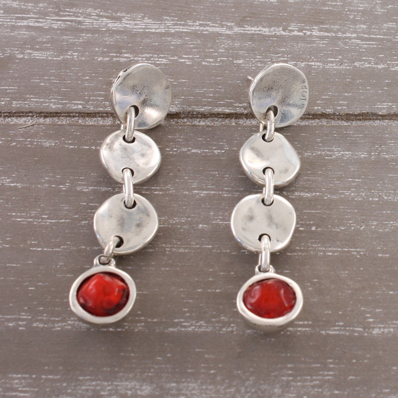 Boucle d’oreille/pendentif Castanet avec résine rouge
