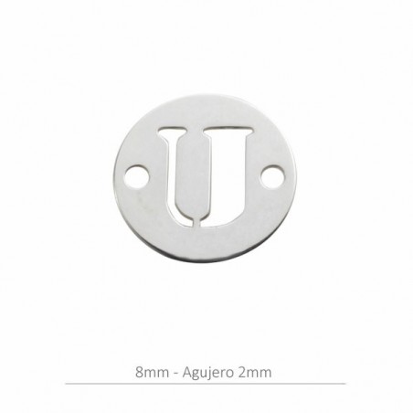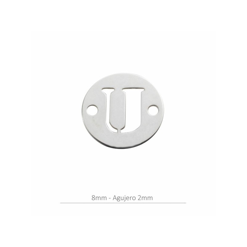 Charme intercalaire lettre ronde U de 8 mm en argent 925. Les perceuses mesurent 1,2 mm. Parfait pour décorer vos bracelets avec différentes breloques avec différentes lettres