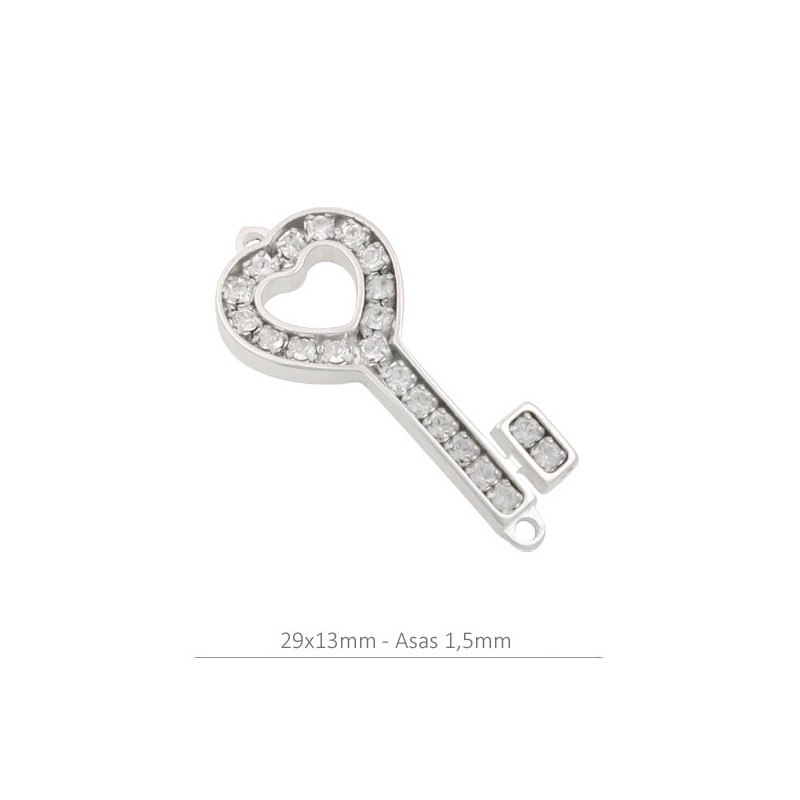 Clé 29 x 12,5 mm avec 2 anneaux et chaîne Swarovski strass
