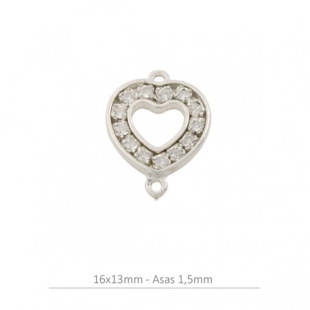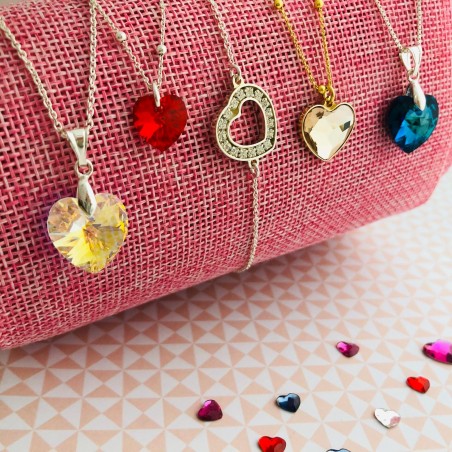 Intercalaire de cœur 17 x 13 mm avec anneaux et chaîne Strass Swarovski